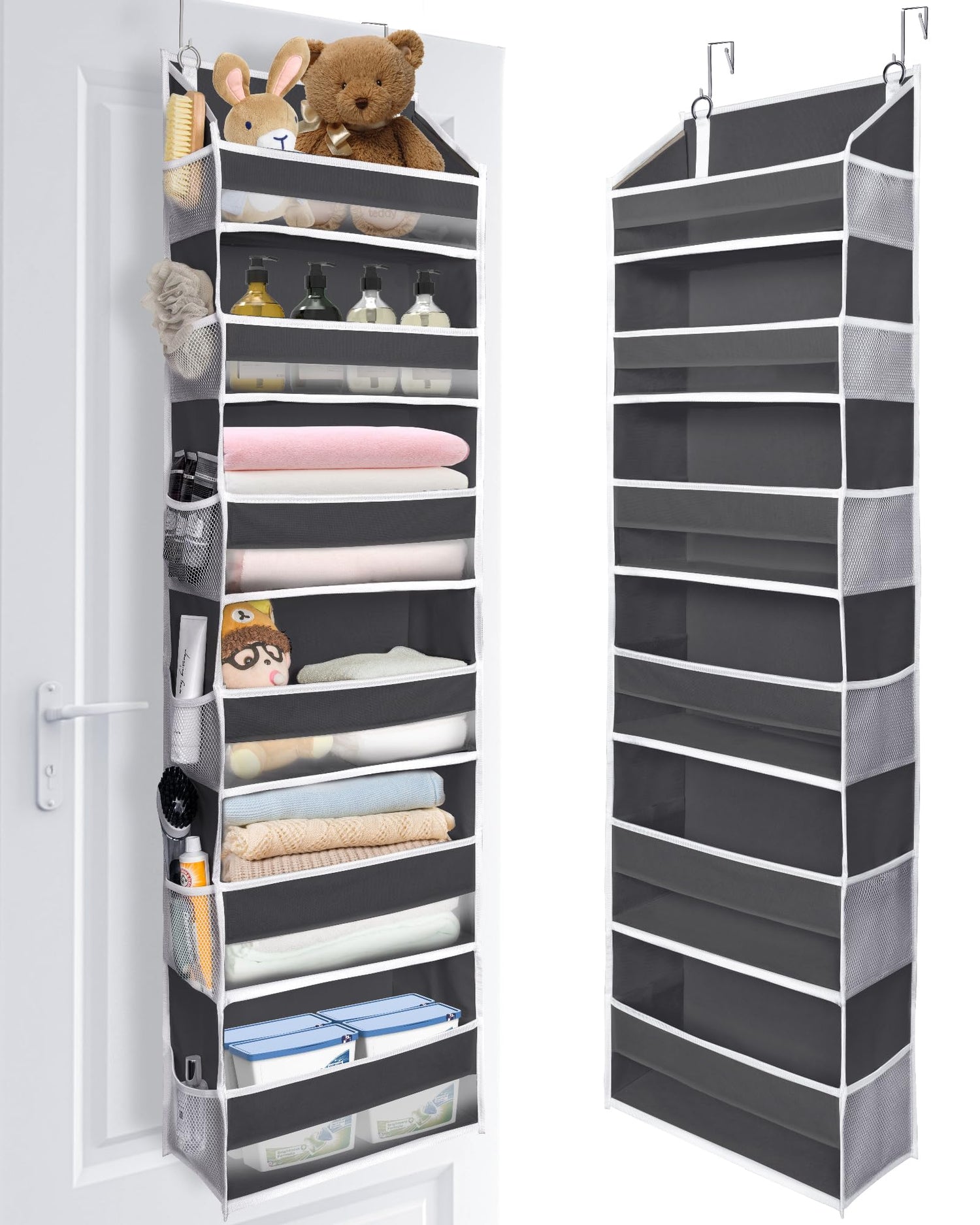 Koosom 1 Pack Over Door Organizer with 5 Large Pockets 10 Mesh Side Pockets, 44 lbs Weight Capacity Hanging Storage Organizer with Clear Window Kids Toys, Shoes, Diapers, Dark Grey, 5 Layers