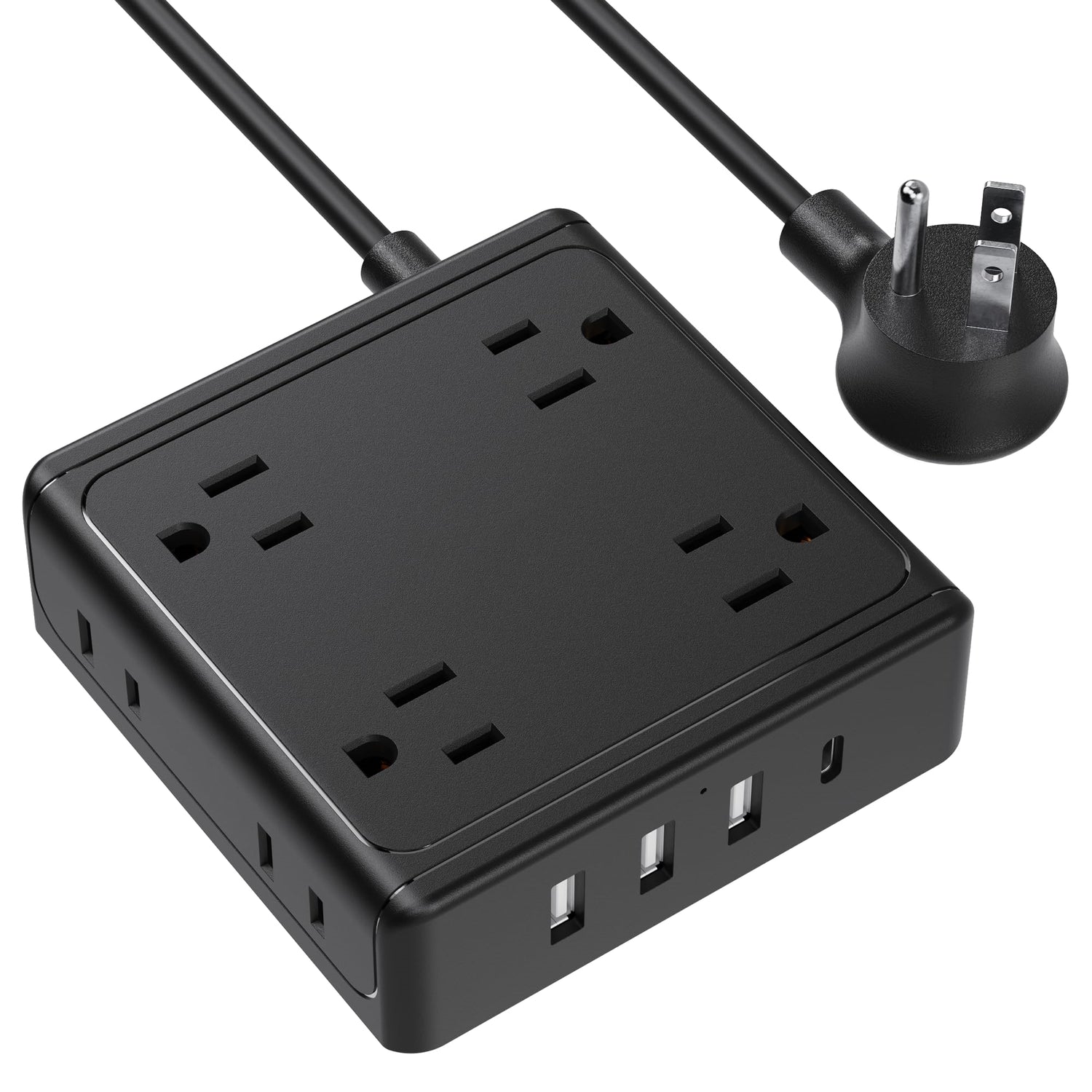Koosom 5ft Power Strip, Surge Protector 900 Joules, 4-Outlet 4-USB Extension Cord, Overload Switch, Grounded, Mountable, Desktop Charging Station for Home, Office, School, Dorm, Computer, Black