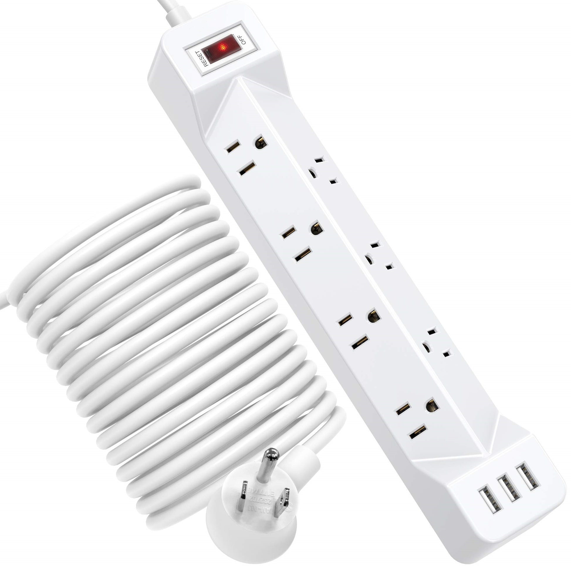 - 【16.5 FT Long Extension Cord】: The extra-long 16.5ft/ 5M power strip has 7 AC Outlets and 3 USB charging ports. This surge protector extension cord can be easily placed in any place, such as under the bed or the end table, providing you with great convenience.