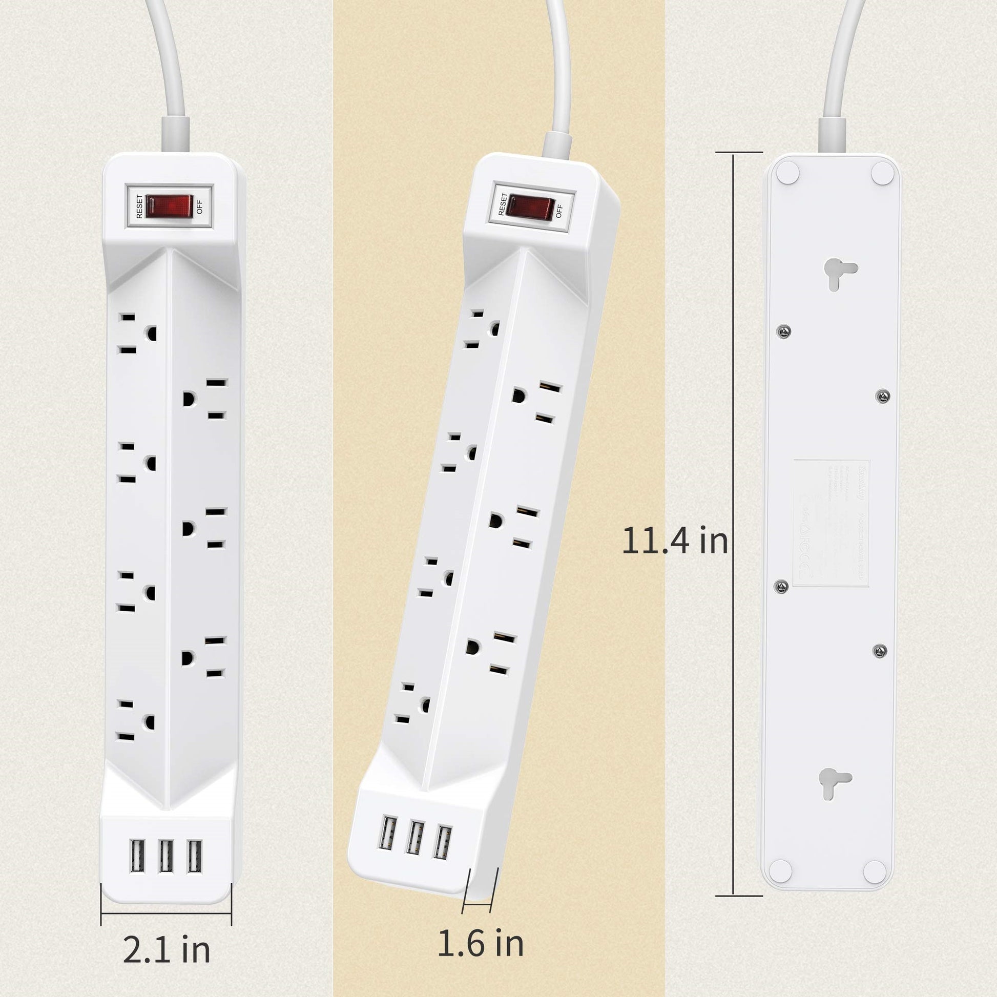 - 【All-Round Protected Surge Protector】: The power strip'shell is made of fireproof PC material with fire-retardant rating of UL94 V-0 (the highest level), which can resist high temperatures up to 1382°F. Also the 8-Fold Safety Protection System (1050J surge protection, 1250W overload protection, short-circuit protection etc) will provide safe and reliable power for your electronic equipments.