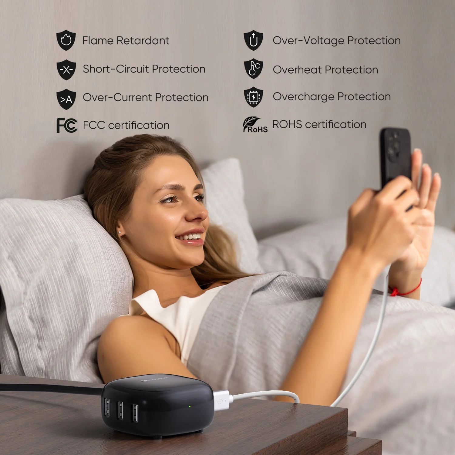 - Charge up to 6 devices simultaneously with the 6 USB charging ports