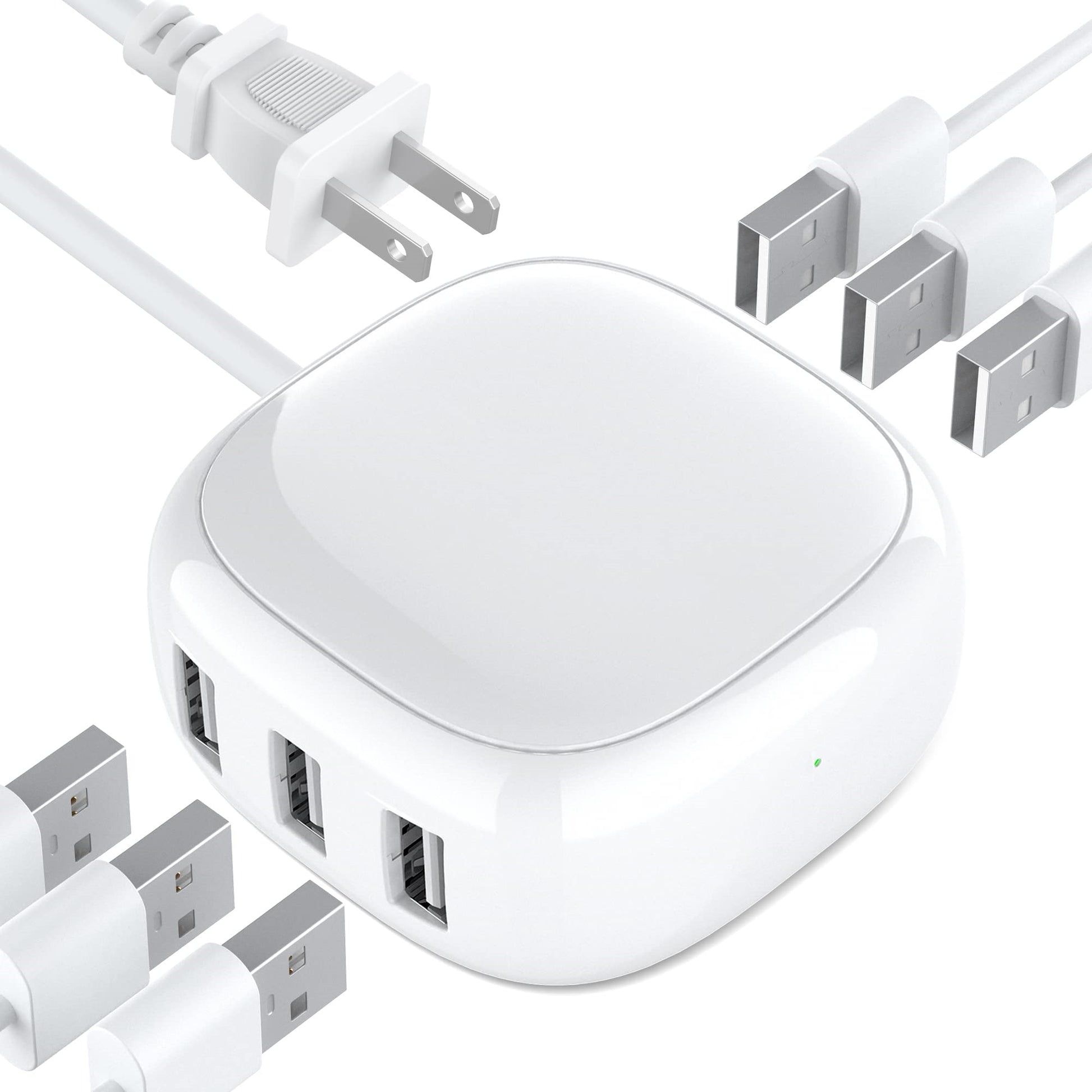 - 【Safe and Quiet】Our multi-USB charger station boasts all-round protection against short-circuit, over-current, over-voltage, and overheat, making it a reliable USB charging hub wherever you need it. This USB charger block has a soft glare-free indicator that won’t disturb your sleep on the nightstand.