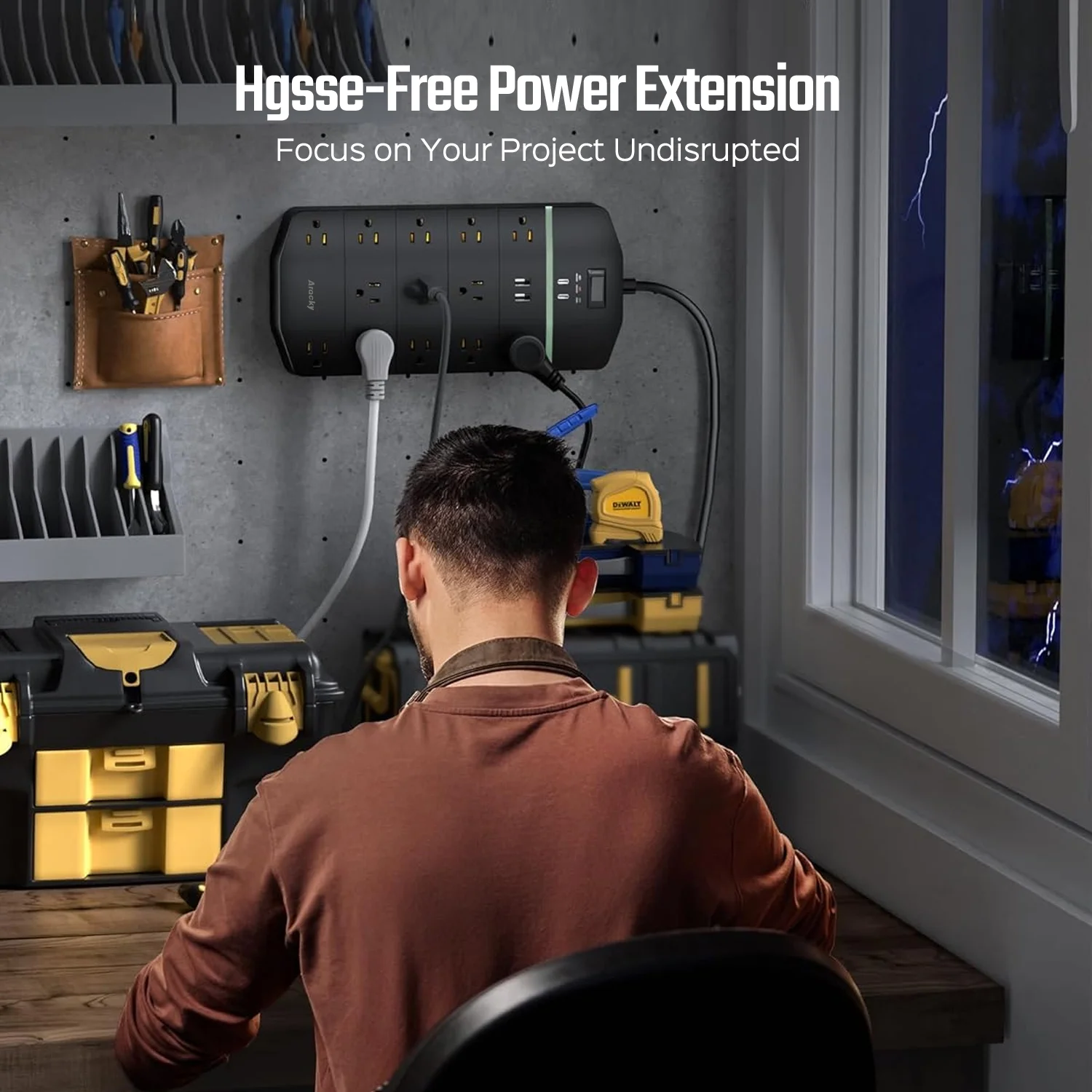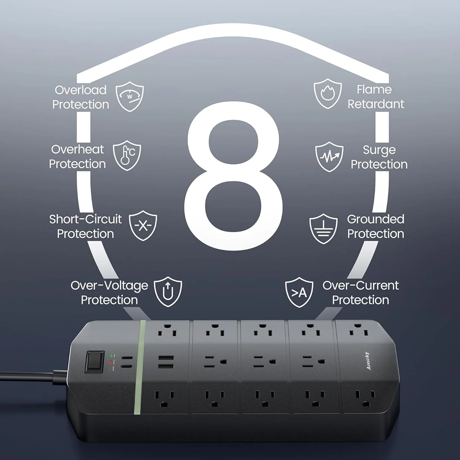 - 5000 Joule Surge Protector: Built-in industrial grade 5000 Joule surge protector gives you peace of mind and protects your valuable electronics from potential surges and voltage fluctuations. The surge protector has an LED indicator to let you know if your device is safe.