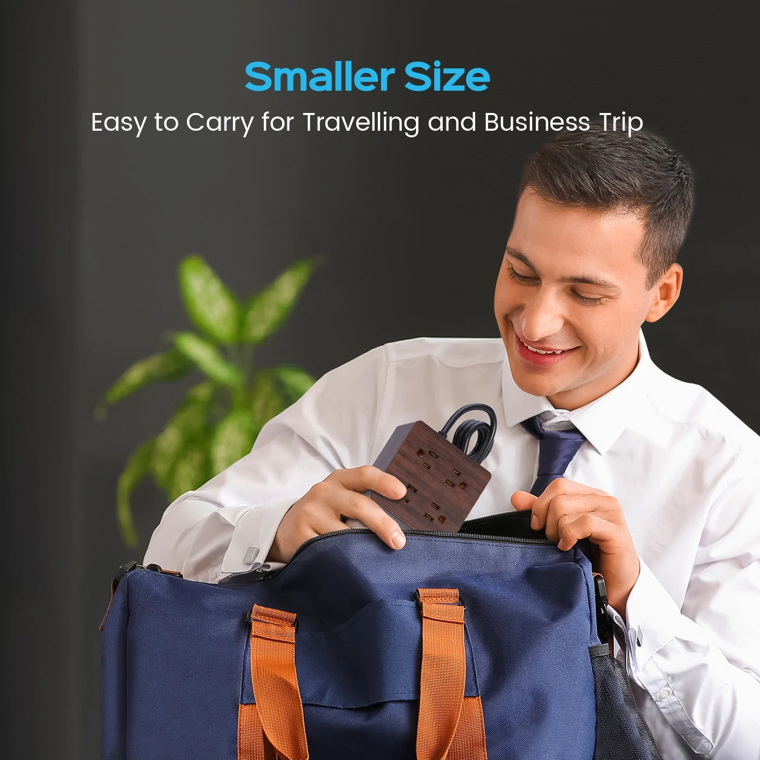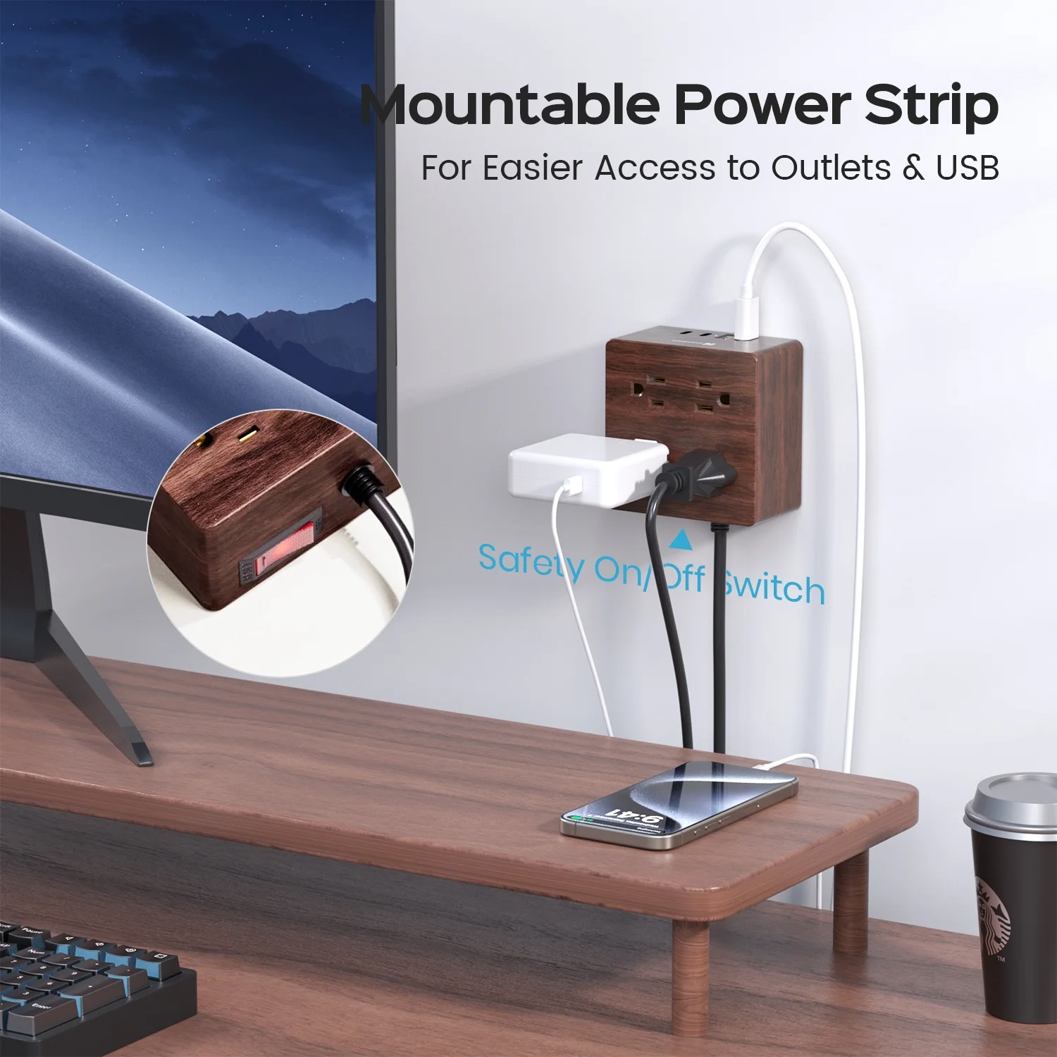 - [Compact and Beautiful] - Rubik cubic design with dark walnut wood grain is easy to carry and beautiful to look at. 3.50 x 3.50 x 1.96 inches size is easy to carry and perfect for traveling. The 5-foot pure core cord provides stable current output, better conductivity and heat dissipation, bringing you great convenience.