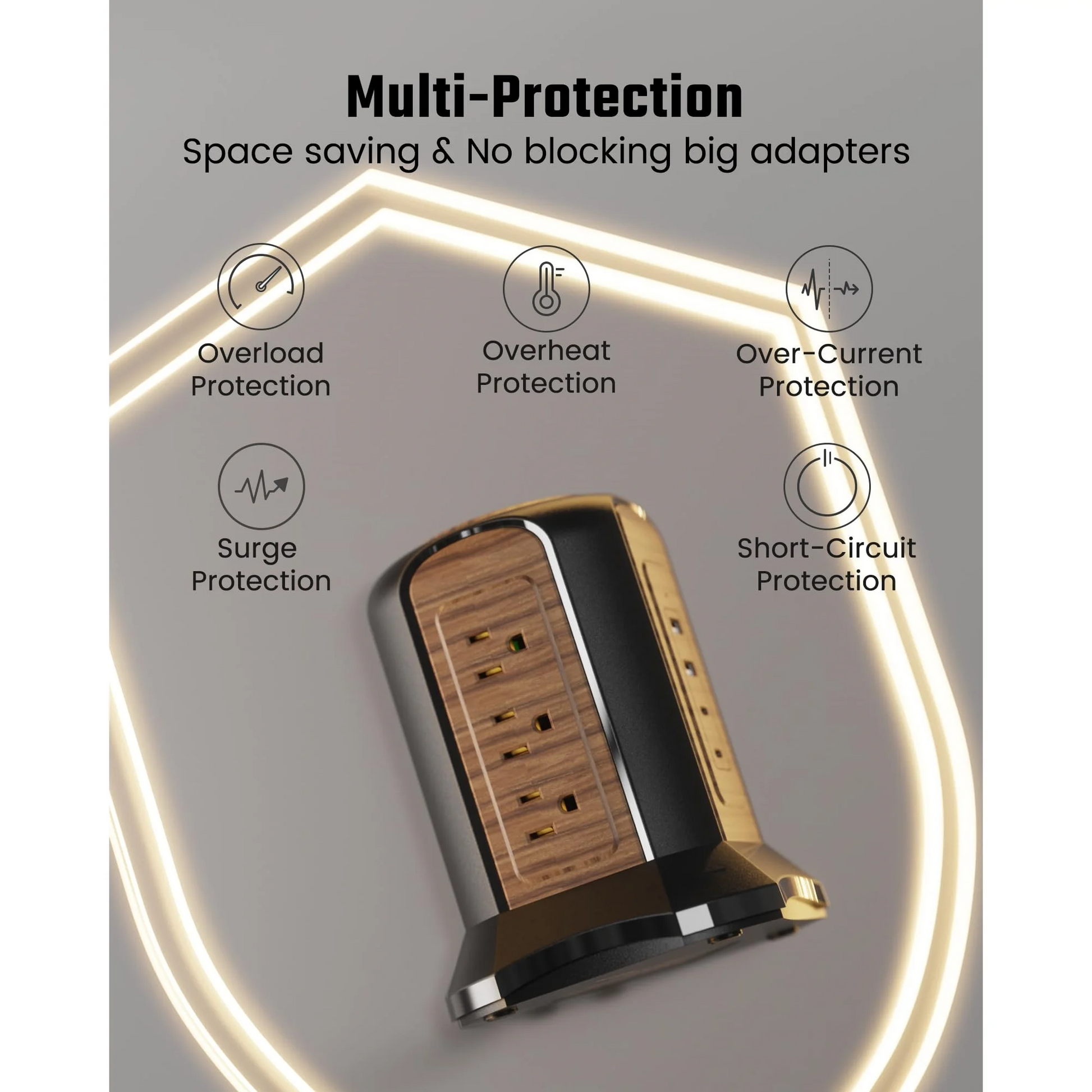 - 【Multiple Protection & Fire Proof】To protect you and your valuable electronic devices, this power strip outlet with wood-like grain has advanced multifunctional protection technology providing surge (1080J)/ over-current/ over-voltage/ over-load/over-heating/ short-circuit and high-temperature protection. Moreover, this desktop power hub is made of ABS + PC fire-resistant material, rating: UL94 V-0, the highest fire resistance level.