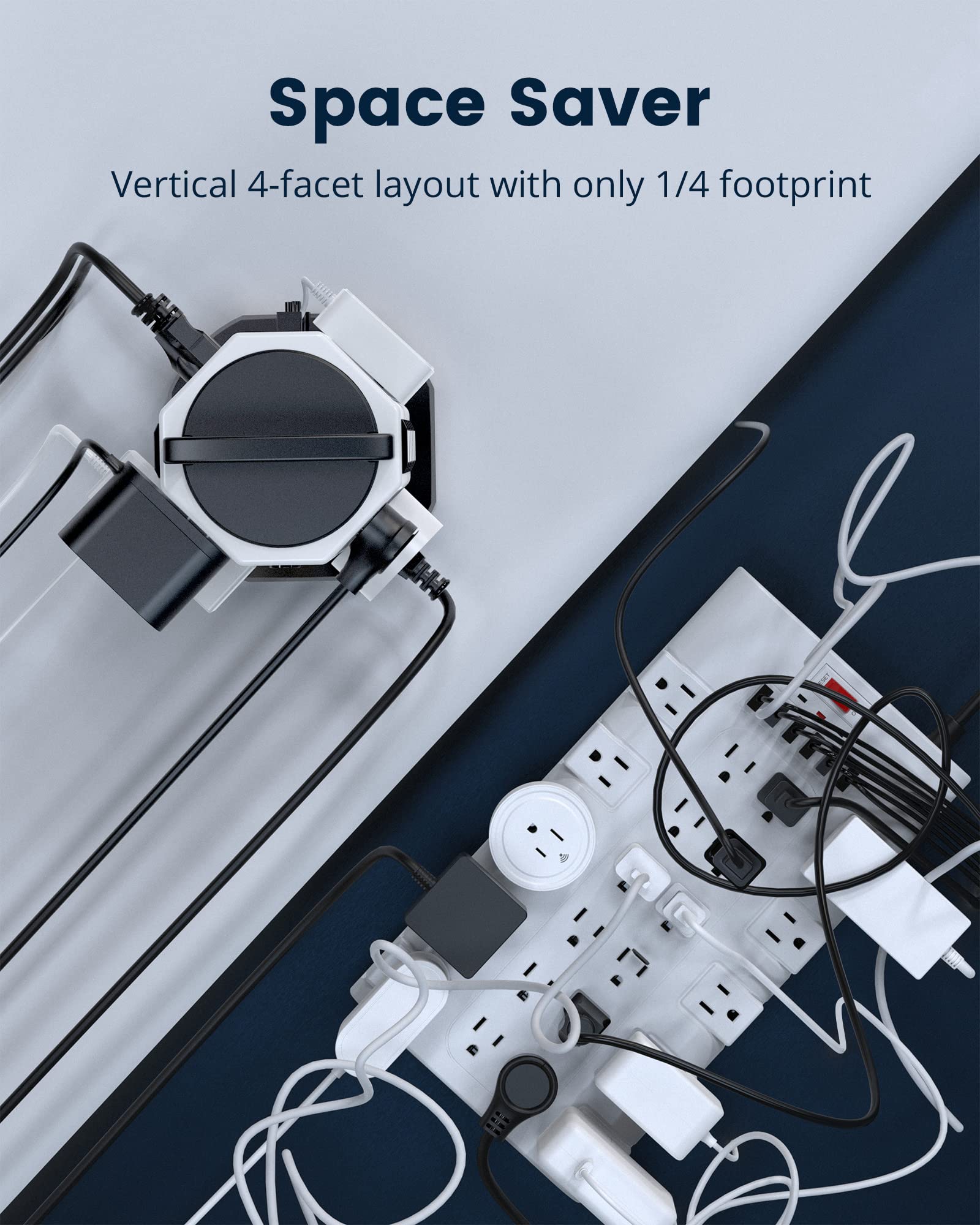 - 【26-in-1 Power Station】 With 20 widely spaced AC outlets and 6 smart charging USB ports (2 USB C) built on 6 different facets, this extension cord with multiple outlets is powerful enough to accommodate most of your devices altogether at the same time.