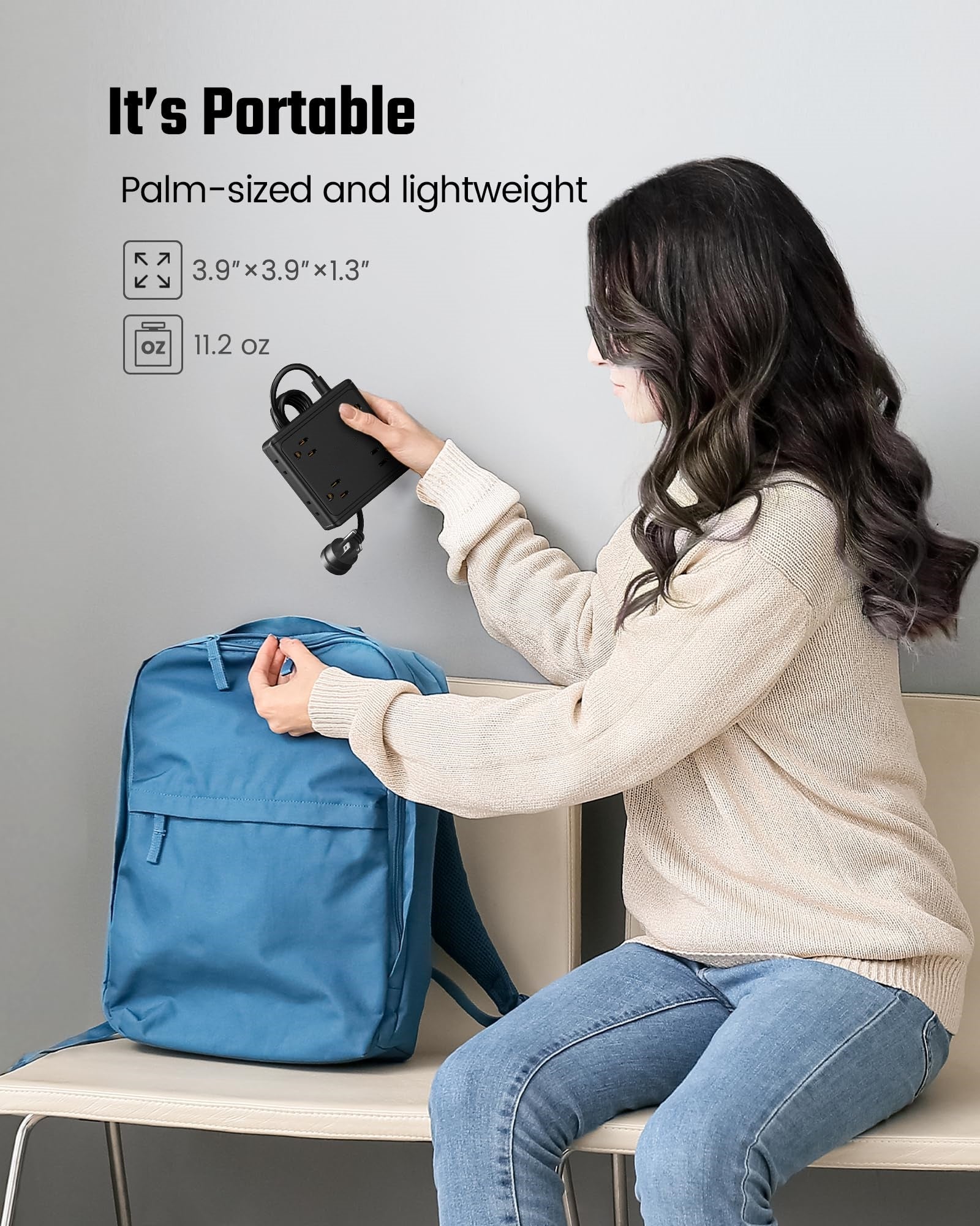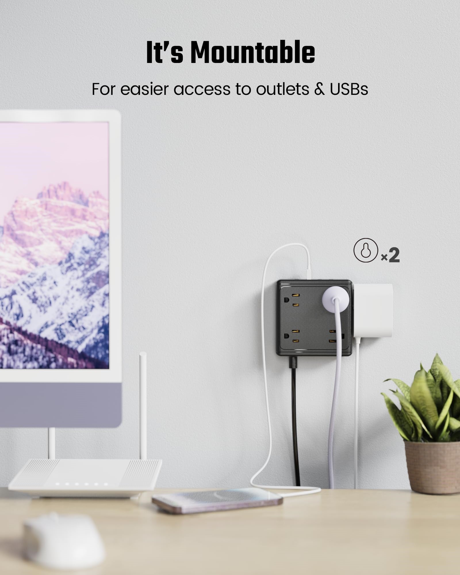 - 【Wide-Spaced Outlets】 The 3-prong receptacles and the 2-prong ones are well spaced on 3 sides of desk power strip, allowing at most 8 large plugs and adapters to be plugged in at a time, without blocking the adjacent outlets. The usb power strip is compact and takes up minimal space: 3.9 x 3.9 x 1.3 inches.
