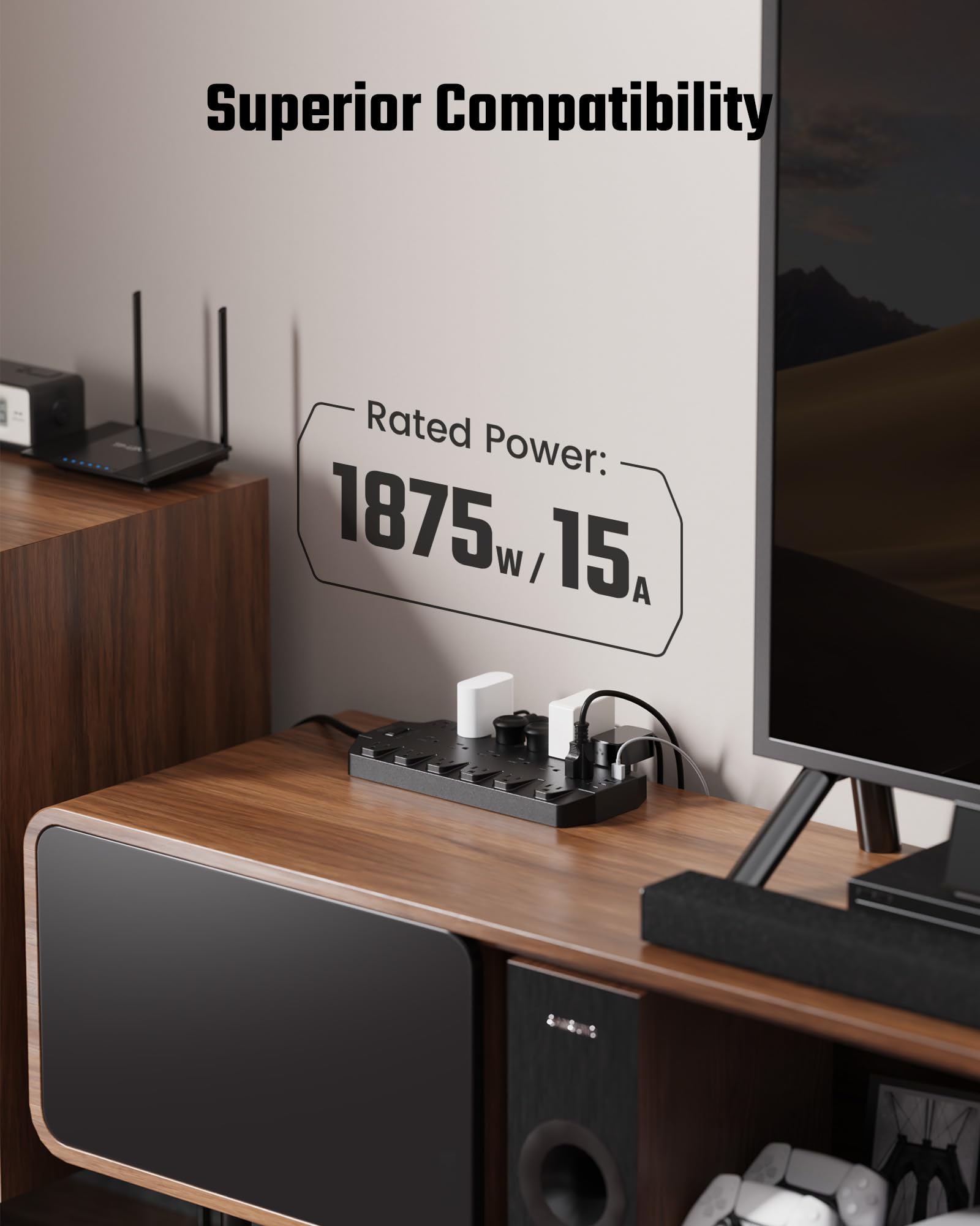 - Power for All: Equipped with 18 AC outlets, 2 USB-A ports, and 2 USB-C ports to gaming room or streaming, office desk, TV, phone, tablet, PC, laptop, and other devices simultaneously.