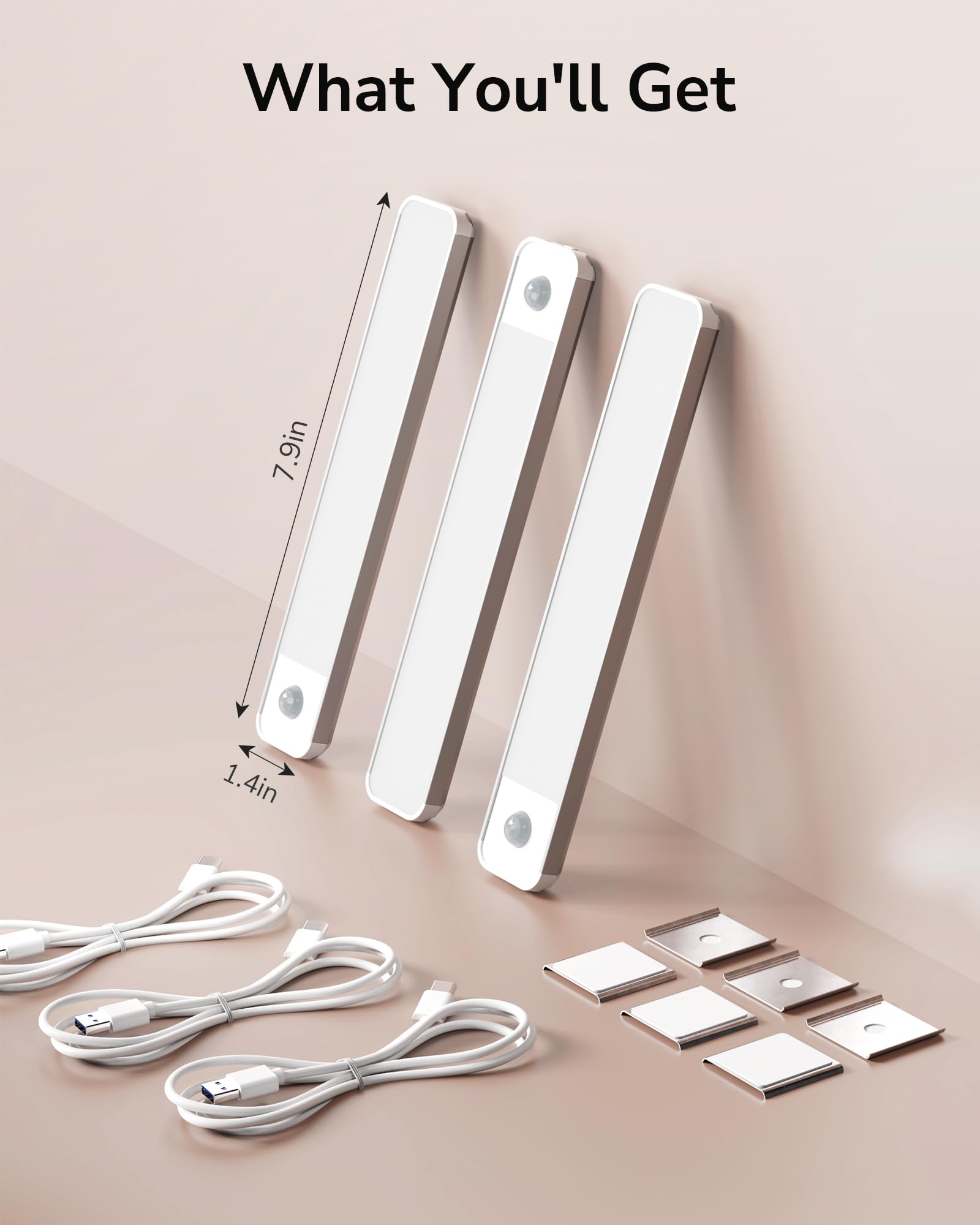 - Motion Sensor Under Cabinet Lights: The under cabinet lights can detect human movement within a range of 16.4 feet. It automatically turns on when you approach, and automatically turns off after 20 seconds if no motion is detected. Ideal for nighttime use, improving safety and convenience.
