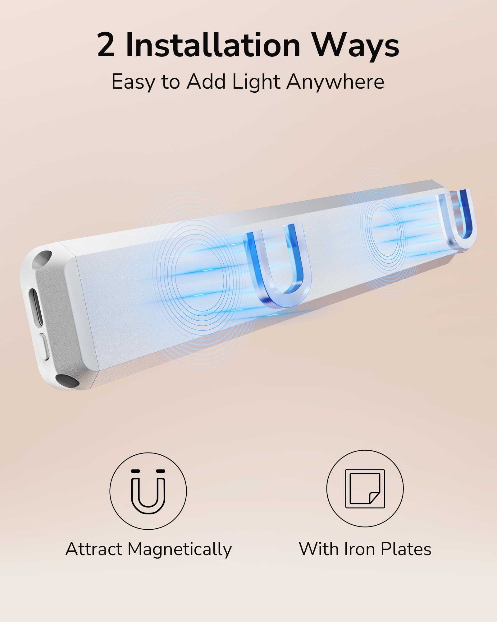 - Easy to Install & Versatile Application: You can attach the battery operated closet lights directly to furniture with iron surfaces, or attach it to any smooth area with the included adhesive iron plates. Ideal for kitchen, bathroom, bedroom, closet, hallway, staircase, cabinet.